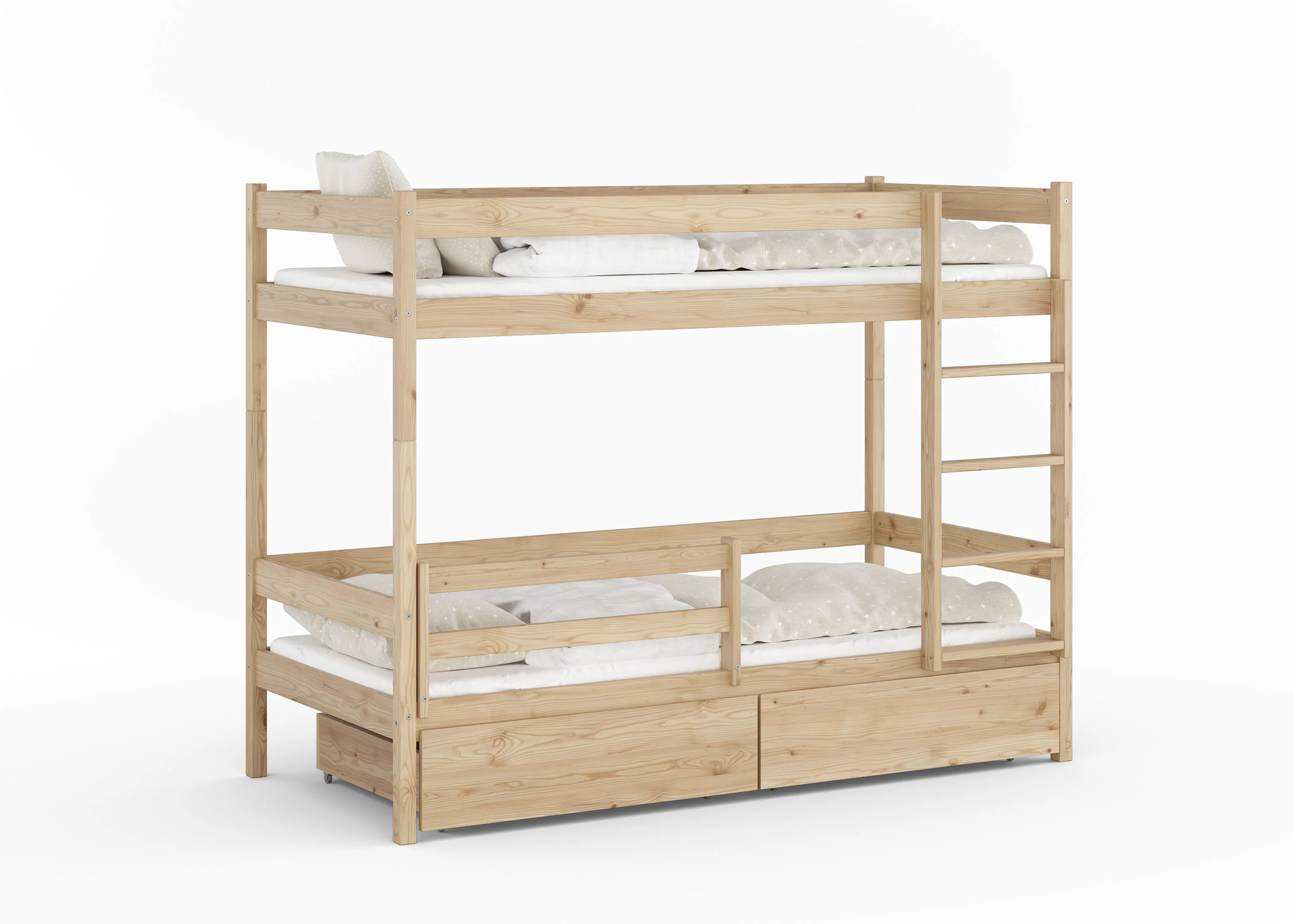 Konstrukcja o niesamowitej wytrzymałości. Każdy poziom wytrzyma aż 150 kg, więc spokojnie możesz położyć się przy dziecku i poczytać bajkę. Zastosowaliśmy solidny stelaż z grubych desek 21 mm (standardowe listwy flex to tylko 8 mm!), dzięki czemu dzieci mogą bawić się na łóżku bez żadnych obaw.