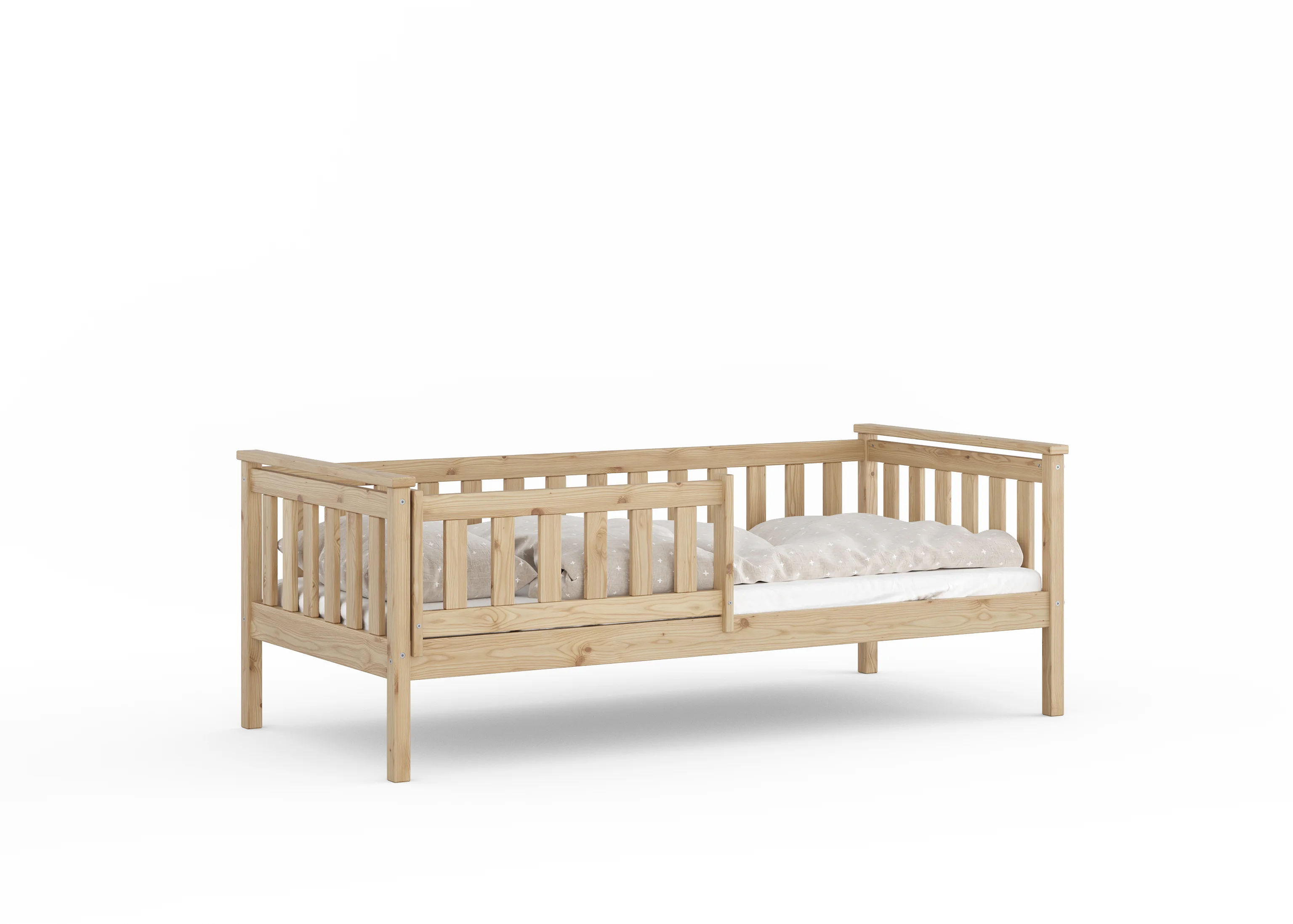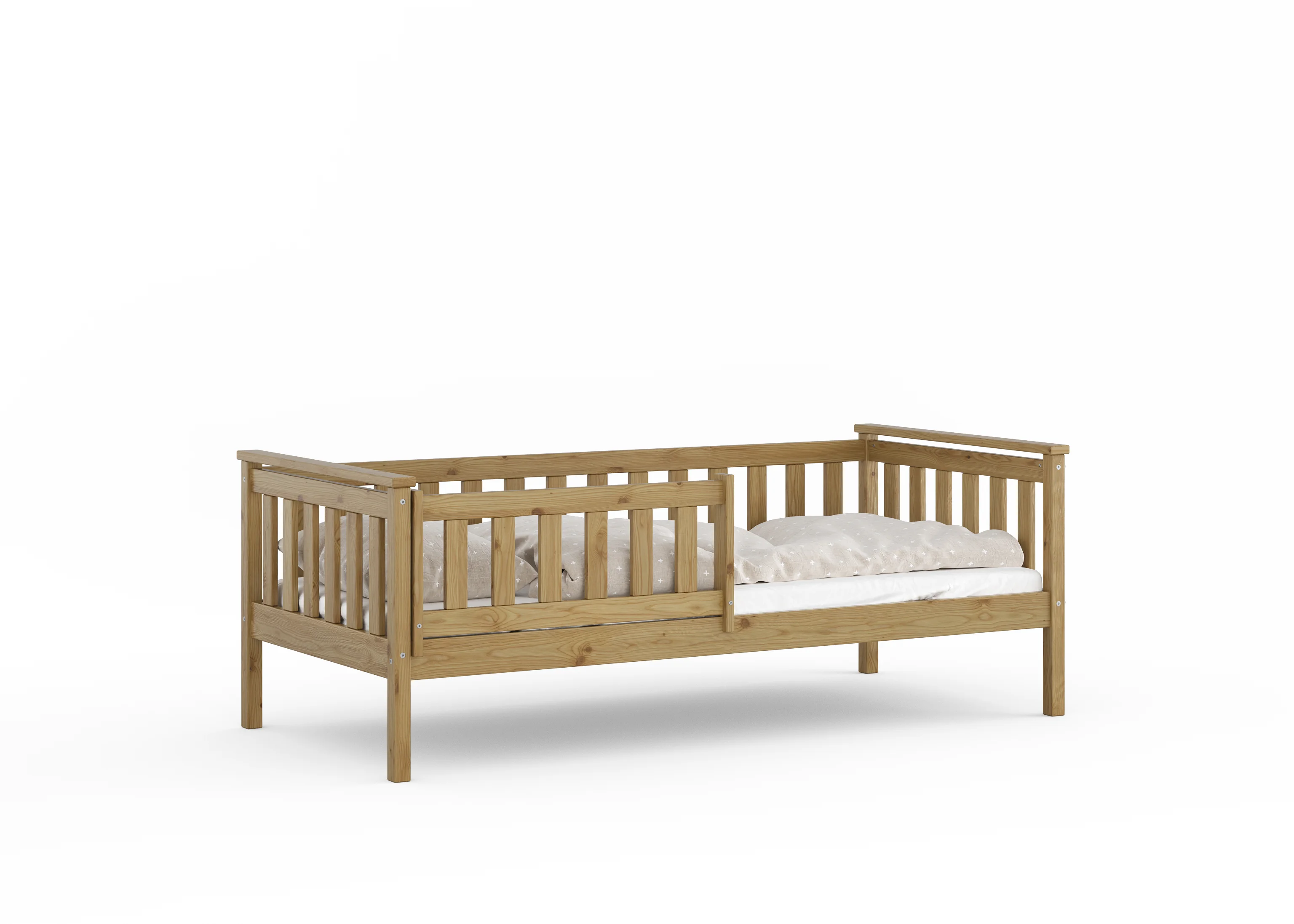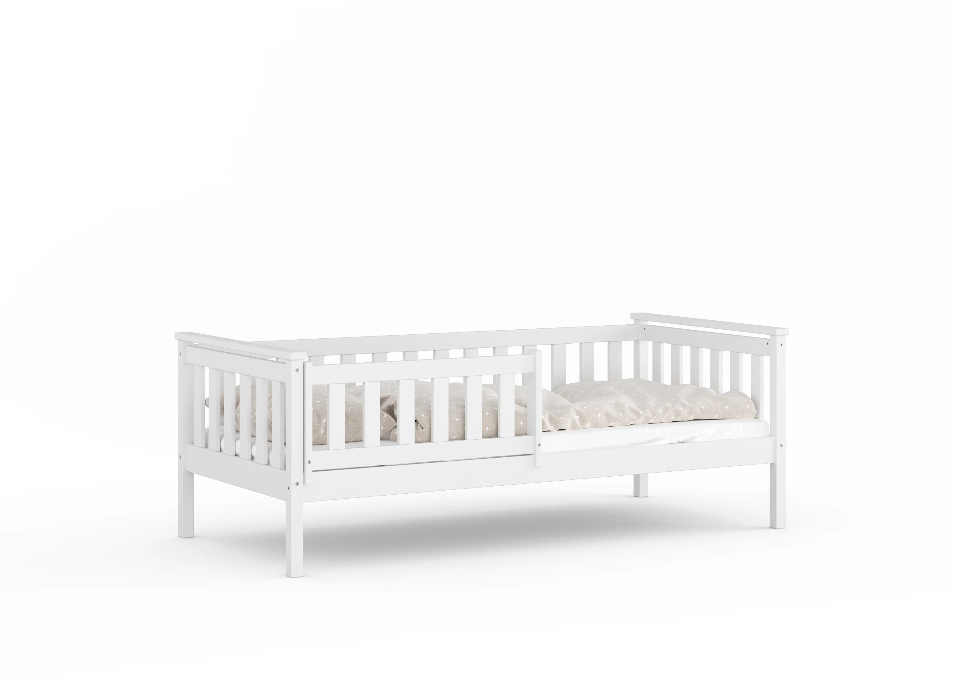 Optymalna wysokość ramy ułatwia swobodne wchodzenie i wychodzenie. To bezpieczny i bezstresowy start dla maluchów, które właśnie żegnają się z łóżeczkiem niemowlęcym.