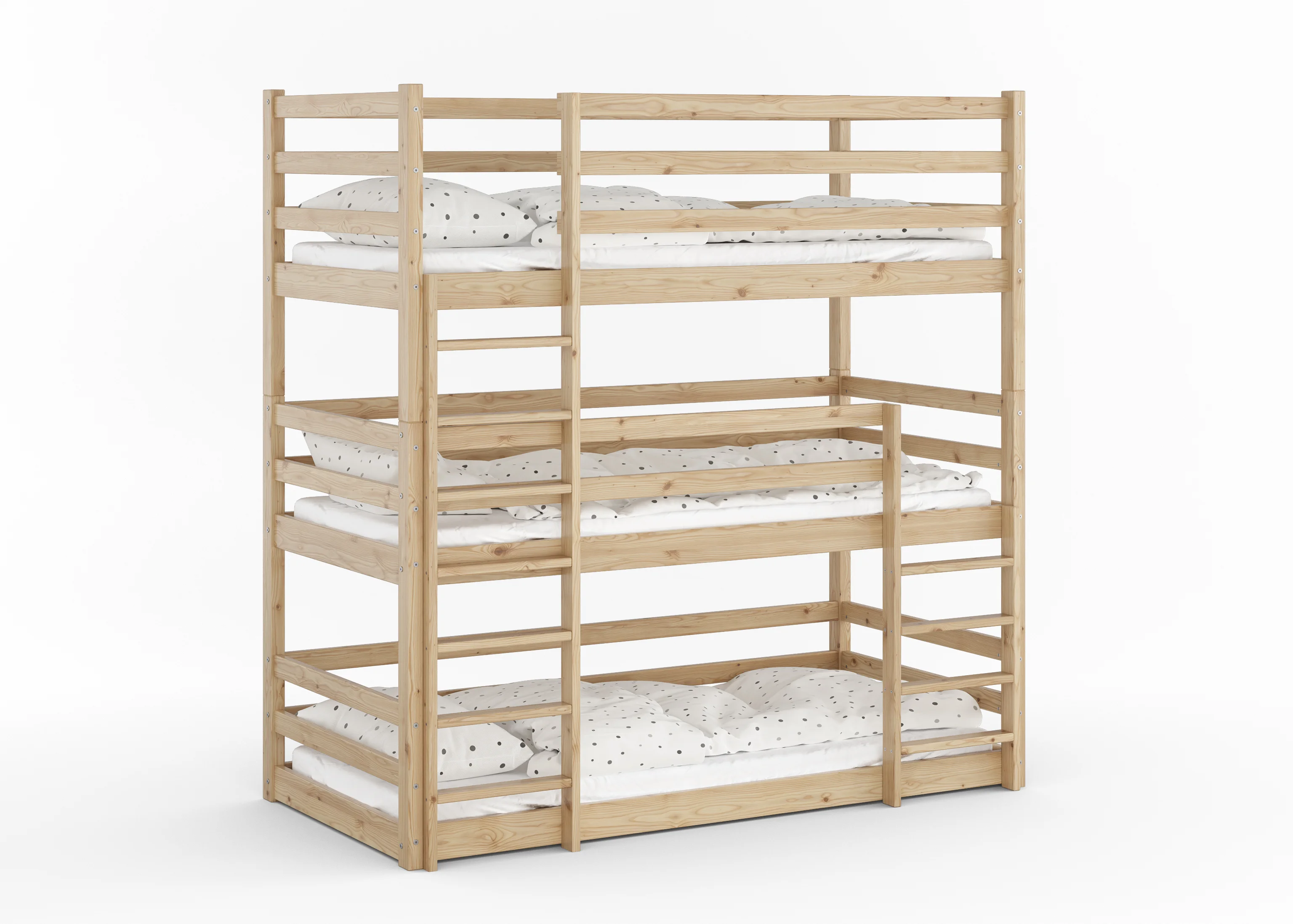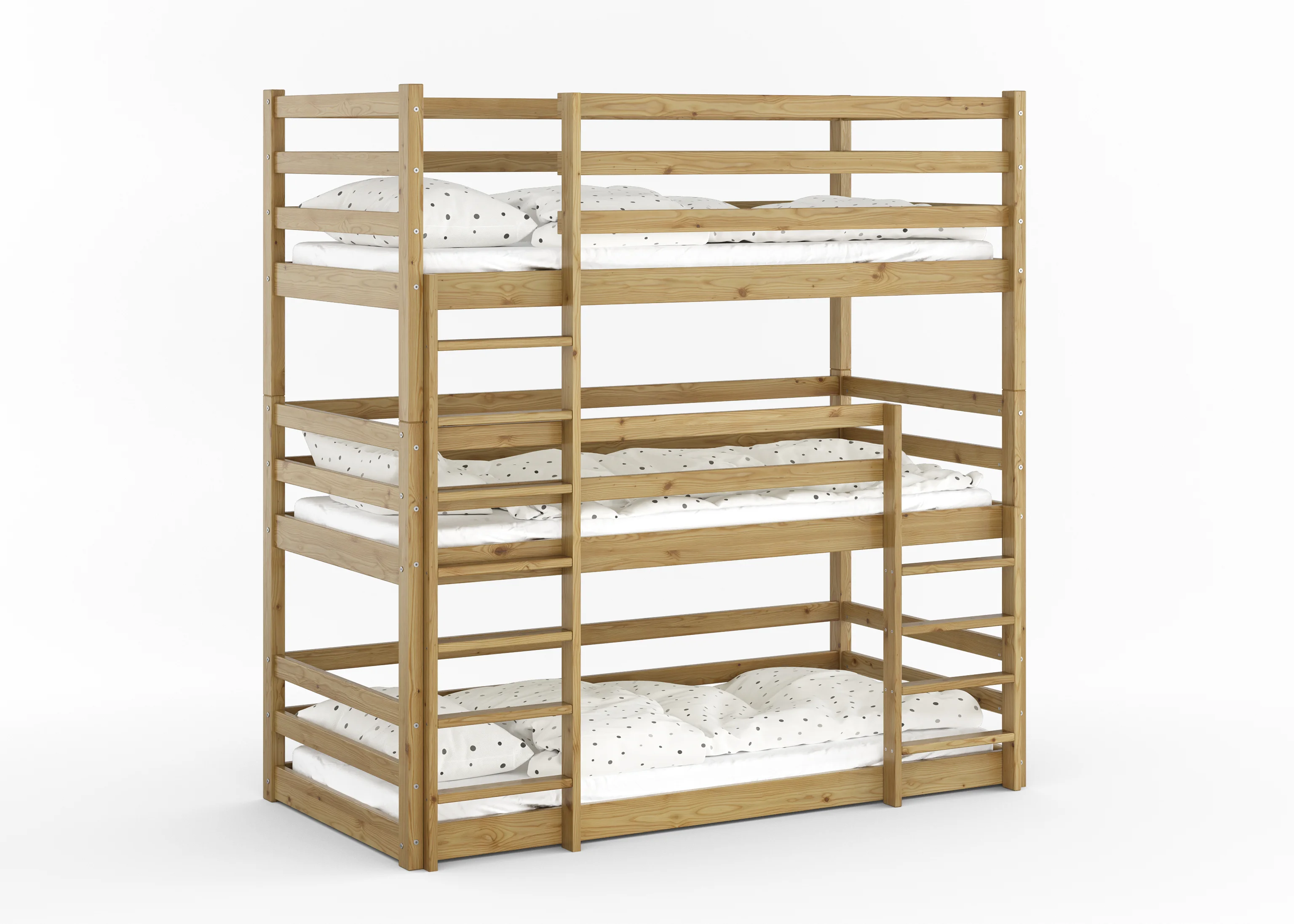 To mebel, który czerpie siłę z natury. Grube profile litego drewna i precyzyjne łączenia sprawiają, że łóżko stoi niewzruszenie – gotowe na skakanie, bitwy na poduszki i lata dorastania.